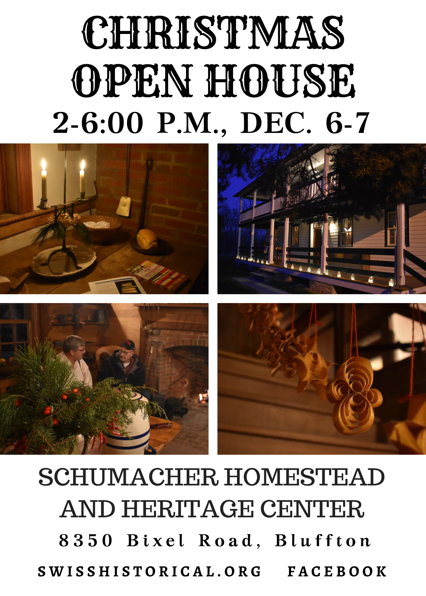 Tours may be scheduled throughout the year. The Schumacher Homestead offers a glimpse into the lives of Swiss immigrants in an area of Allen and Putnam counties known as the Settlement during the mid 19th century.